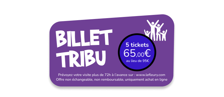 nos offres 2026 BILLET MALIN (Uniquement sur internet) Bénéficiez d’un tarif préférentielsi vous prévoyez votre visite plus de 72heures à l’avance !Entre 90cm et 1m20 : 14 €Plus d’1m20 : 17 € BILLET LIBERTÉ (Uniquement sur internet) Valable le jour de votre choix durant toute la saison, et cela à un tarif préférentiel ! (Billets valables à partir du lendemain de l’achat)Entre 90cm et 1m20 : 14,50 €Plus d’1m20 : 18,50 € BILLET CLASSIQUE (à acheter sur place, le jour de votre venue) Ce billet vous offre un accès au parc le jour de votre visite.– 90 cm : GratuitPlus d’1m20 : 19 €Entre 90cm et 1m20 : 15 €Femme enceinte / Plus de 65 ans : 15 €PMR : 12,90 € BILLET TRIBU (Uniquement sur internet, non cumulable avec d'autres offres en cours) Bénéficiez d’un tarif préférentiel pour l’achat de 5 tickets (dates identiques), si vous prévoyez votre visite plus de 72heures à l’avance !+1m20 : 65€ pour l’achat de 5 tickets (billets datés – dates identiques – uniquement valable du 01/04 au 30/06) PASS SAISON 2026 Visitez le parc Le Fleury en illimité pendant toute la saison ! + de 65 ans 48€ + d'1m20 60€ + de 0,90m et - de 1m20 48 € Entrée gratuite pour les moins de 90 cm Le parc n’accepte pas les chèques FERMETURE DES CAISSES 1H AVANT LA FERMETURE DU PARC FERMETURE DES ATTRACTIONS 30 MIN AVANT LA FERMETURE DU PARC Je réserve mes billets